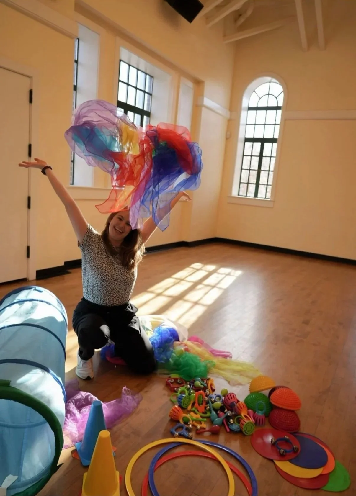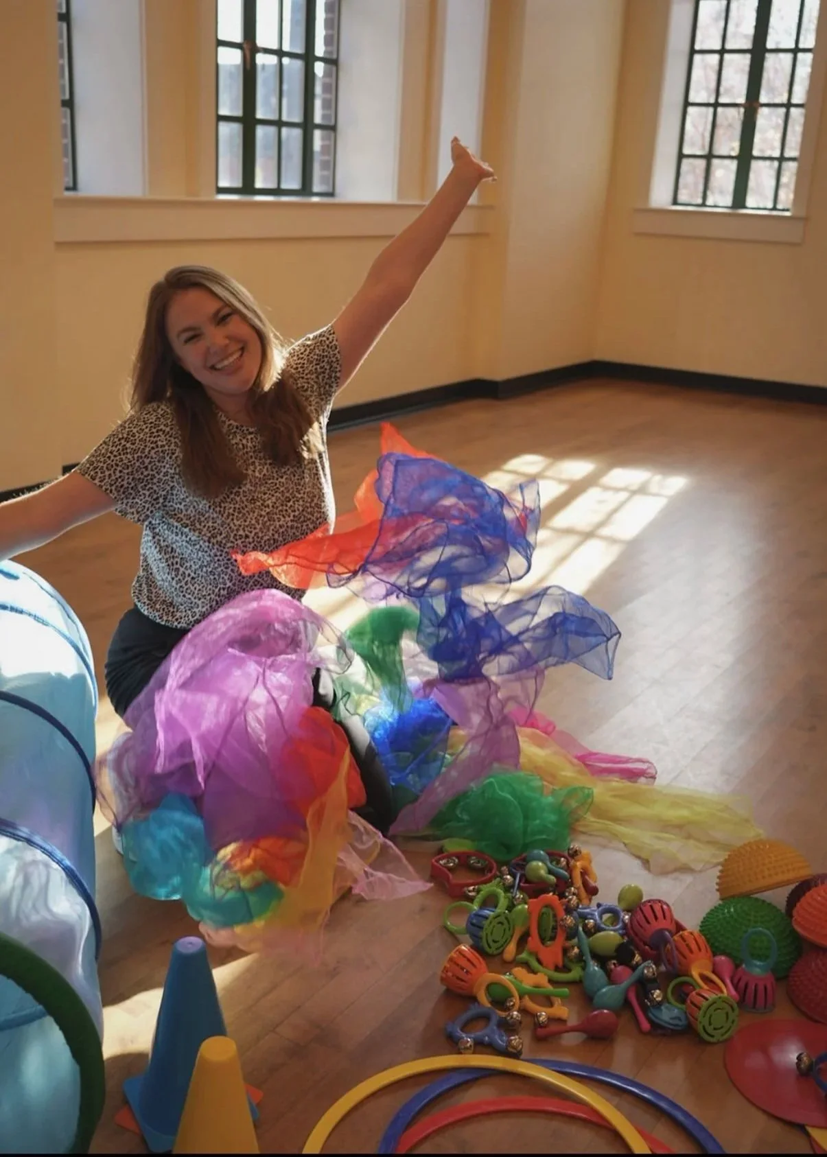 With music and dance, Teacher Marika creates a safe and energetic environment for dancers and their caregivers to learn and explore together.